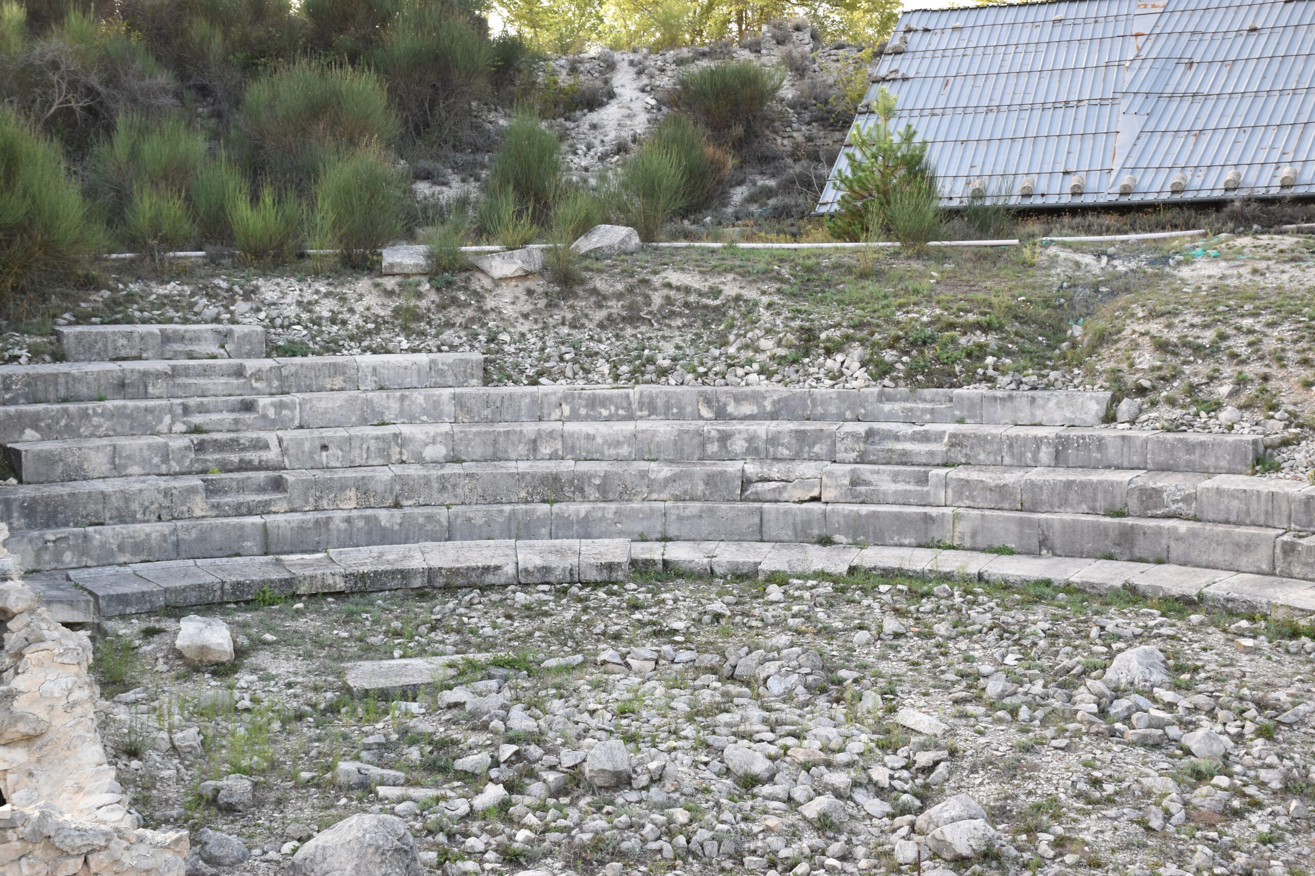 Oggi restano i monti a fare da cornice, le mura difensive, il tempio probabilmente dedicato ad Apollo e il vicino teatro, capace di accogliere fino a 2500 spettatori, insieme alle pietre delle antiche pavimentazioni domestiche. Tracce concrete di un passato romano che qui non è mai davvero scomparso.